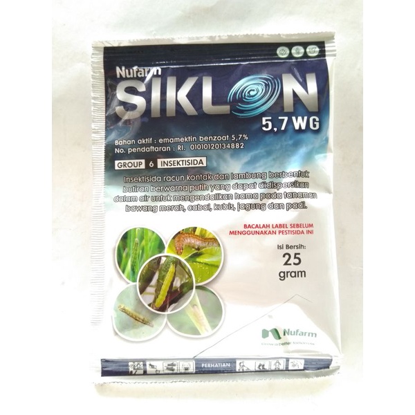 Insektisida siklon 5.7 WG adalah insektisida kontak berbentuk butiran berwarna putih yg dapat didispersikan dalam air untuk mengendalikan hama pd tanaman bawang merah dan cabai.Bahan aktif : Emmamektin Benzoat 5,7%Isi bersih :
