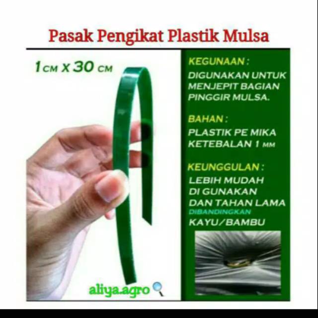 Penjepit mulsa mika pengganti bambuharga per bijiPenjepit Mulsa Plastik Pengganti Kayu/Bambu bahan : Plastik PE mika ketebalan : 1 mmpanjang : 30 cmlebar : 1 cmKeunggulan- lebih mudah di tekuk dan di tancapkan ke tanah,- lebih tahan lama dari pada kayu/bambu- bisa digumakan lebih dari 1x,#mulsa#penjepitplastikmulsa#penjepitmulsa#penjepit