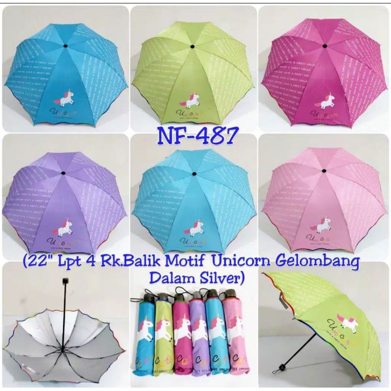 Name: Payung Lipat Motif Unicorn Nf-487 / Payung Lipat Lucu / Payung Serbaguna Panas Dan Hujan