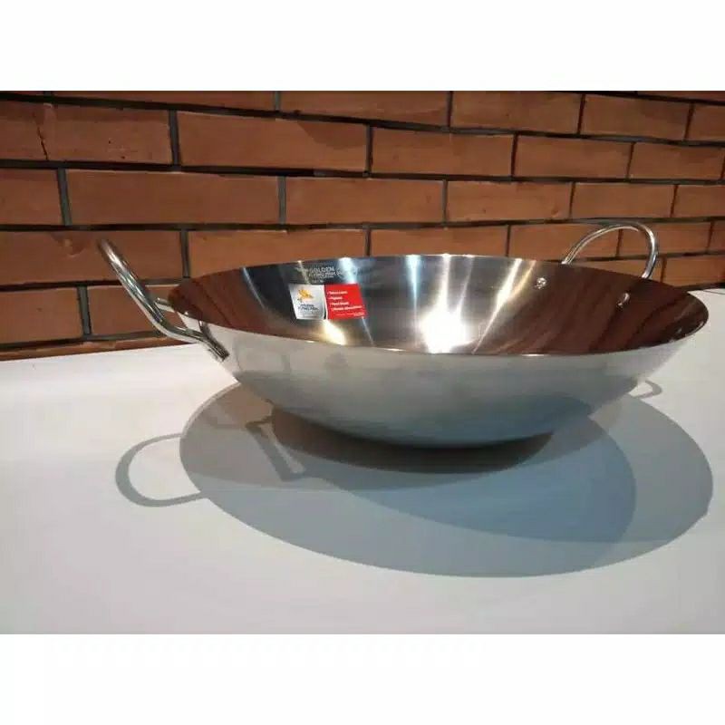 Golden Flying Fish Harden Stainless Steel Inovasi terbaru dari Golden Flying Fish, Wajan Stainless Steel Harden. Diproduksi dengan treatment khusus yang membuat wajan menjadi tidak lengket saat menggoreng (namun harus tetap menggunakan minyak).Wajan ini menggunakan material Stainless 430 yang memilikiSertifikat SNI 8752:2019Kelebihan Wajan Wok Stainless Steel Golden Flying Fish:- Food grade- Bersertifikat SNI 8752:2019 (Standar Nasional Indonesia)- Tidak lengket. Panas lebih merata dan hemat energi- Higienis dan mudah dibersihkan.- Hemat energi karena lebih cepat panas- Lebih tebal, kuat, dan tahan lama. Tidak rontok saat proses memasak- Tidak mengubah rasa atau menimbulkan reaksi kimia pada makanan yang dimasakCara Memakai Wajan Harden1. Panaskan wajan dengan api kecil2. Tuangkan minyak goreng ke dalam wajan3. Oleskan & ratakan minyak4. Tunggu sampai minyak menjadi panas (keluar asap)5. Wajan sudah siap digunakanPeringatan1. Jangan panaskan wajan kosong dengan api besar untuk menghindari gosong. Bahan stainless sangat cepat panas. Cukup api kecil saja jika ingin memanaskan minyak.2. Jangan biarkan kompor dalam kondisi menyala saat mengangkat masakan yang telah matang.3. Permukaan wajan yang gosong adalah hal wajar (bukan karat). Setelah dipakai berulang kali dengan pemanasan yang cukup, warna gosong akan menjadi samar.4. Penyebab lain wajan cepat gosong adalah burner (tempat keluar api) kompor yang kotor sehingga menghasilkan api yg tidak merata, sisa kotoran sekitar burner yang ikut terbakar & menciptakan gosong.5. Harap cek kebersihan kompor agar semua wajan lebih awet & masakkan menjadi lebih higienis.Cara Mencuci Wajan1. Jika muncul kerak atau gosong, cuci wajan dengan sabut stainless & sabun cuci piring. Gosok secara halus untuk menghindari baret pada permukaan wajan.2. Selesai dicuci, langsung keringkan wajan untuk menghindari noda air & simpan di tempat yang kering.#wajansteinlis #wajan30cm #wajan32cm #wajan