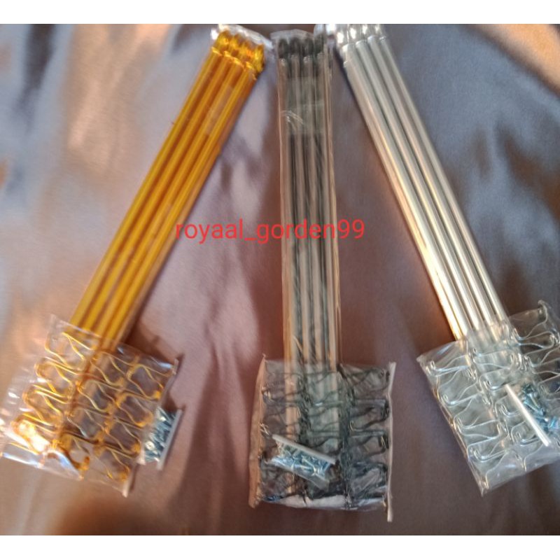 Setik kupu kupu terbuat dari bahan alumunium besi ukuran 30cm dan 50 cm bisa di panjangkan persatuannya sudah di lengkapi kaki dan bautnya dan tiga pareasi warna gold silver dan coklat tua gorden/korden/gording/hordeng/gordengbatang setikbatang urilbatang balok batang murah/setik murahrel/railgorden balok,selamat berkunjun dan belanja di toko royall_gorden99Hapi soping☺️☺️☺️☺️☺️☺️