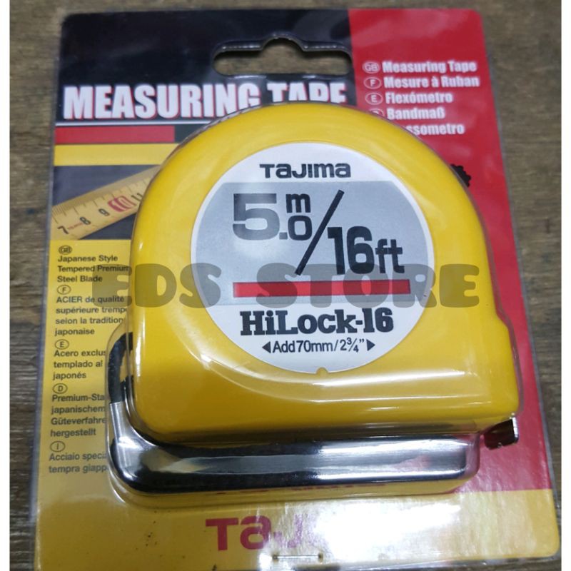 Meteran Brand TAJIMA HILOCKpanjang = 5 meterWarna plat = kuningAngka 1 sisi, atas inch bawah cmHarga per pcsAyoo Silahkan Dior