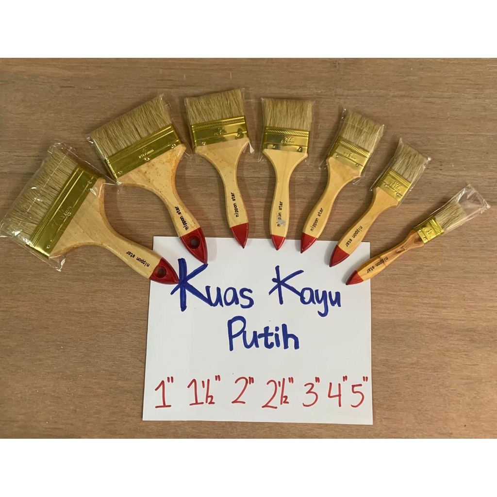 Deskripsi Kuas Cat Tembok dengan ukuran dari 1" Inch sampai 5 Inch Gagang Kayu READY STOCK!DESKRIPSI PRODUK- Merek Nippon Star- Ukuran 1" , 11/2", 2", 3", 4" , 5"- Gagang Kayu Putih- Bulu tidak mudah Rontok - Bulu Kuat- Product Japan - Good QualityGunakan Produk berkualitas agar dapat hasil yang ma